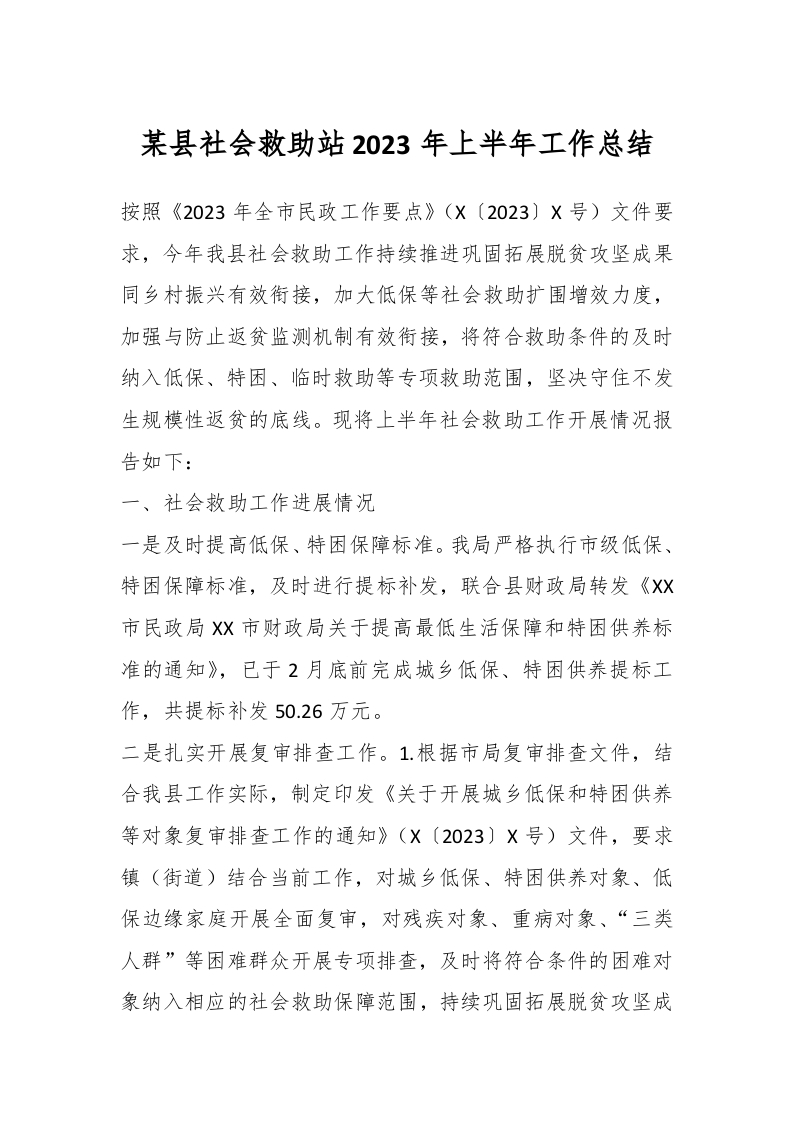 / 某县社会救助站2023年上半年工作总结