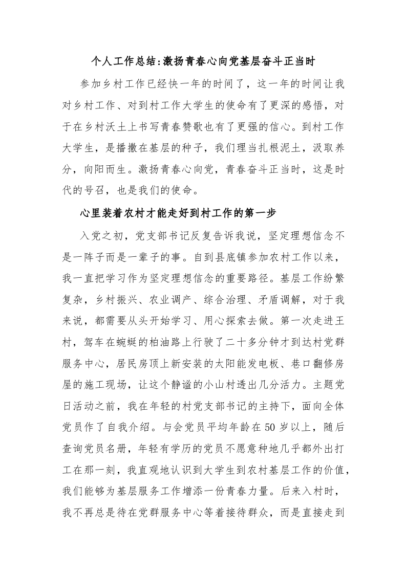 / 个人工作总结激扬青春心向党基层奋斗正当时