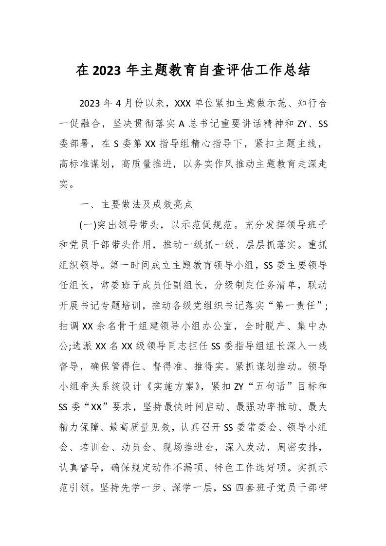 / 在2023年主题教育自查评估工作总结