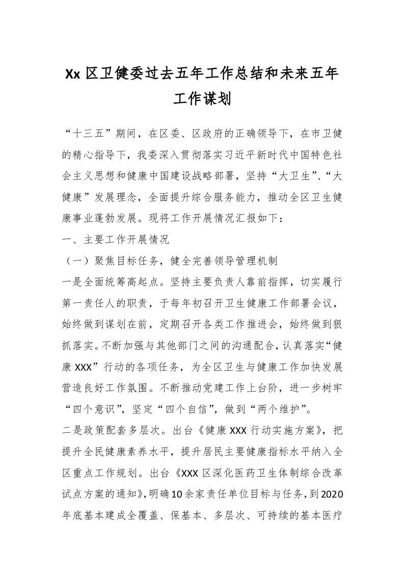 / Xx区卫健委过去五年工作总结和未来五年工作谋划