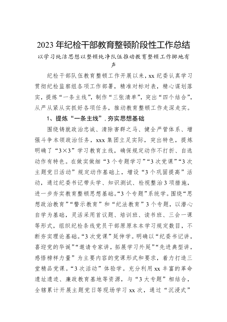 / 2023年纪检干部教育整顿阶段性工作总结