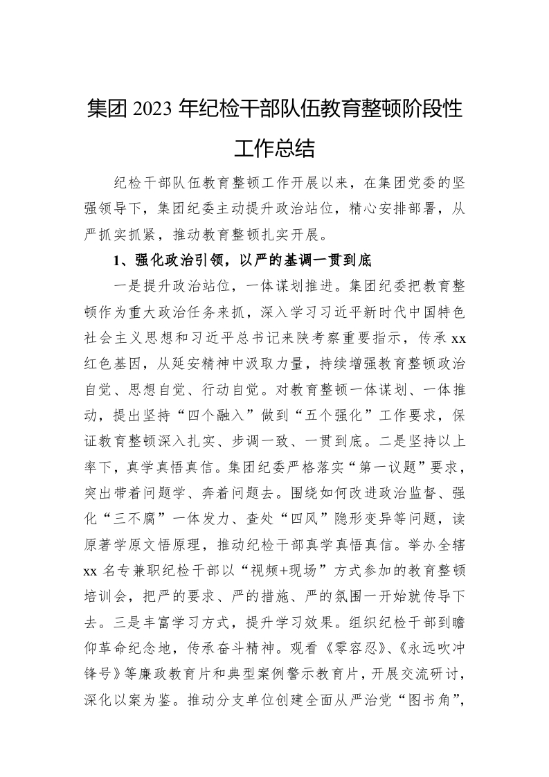 / 集团2023年纪检干部队伍教育整顿阶段性工作总结