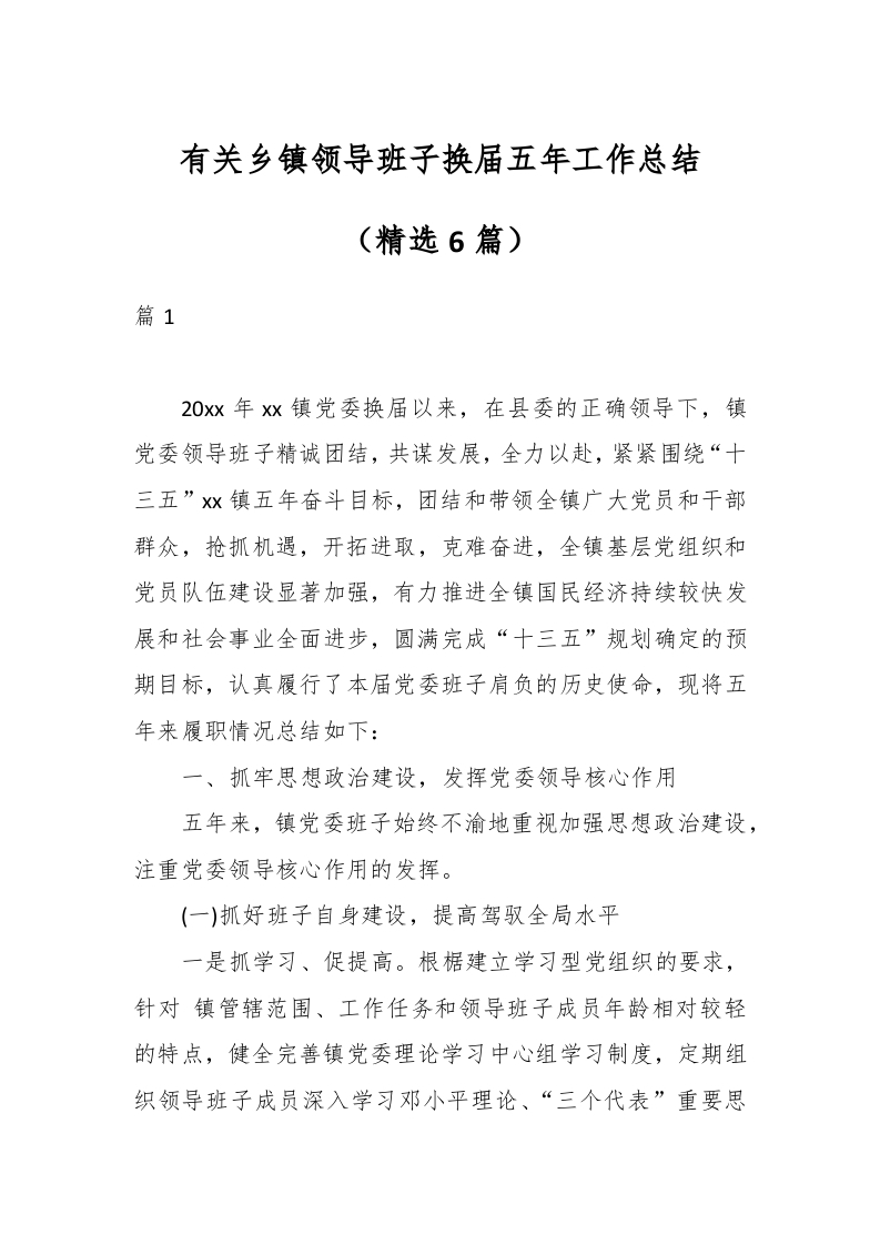 / (精选6篇)有关乡镇领导班子换届五年工作总结