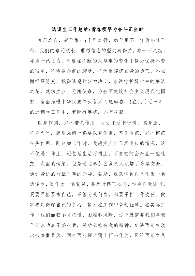 / 选调生工作总结青春须早为奋斗正当时