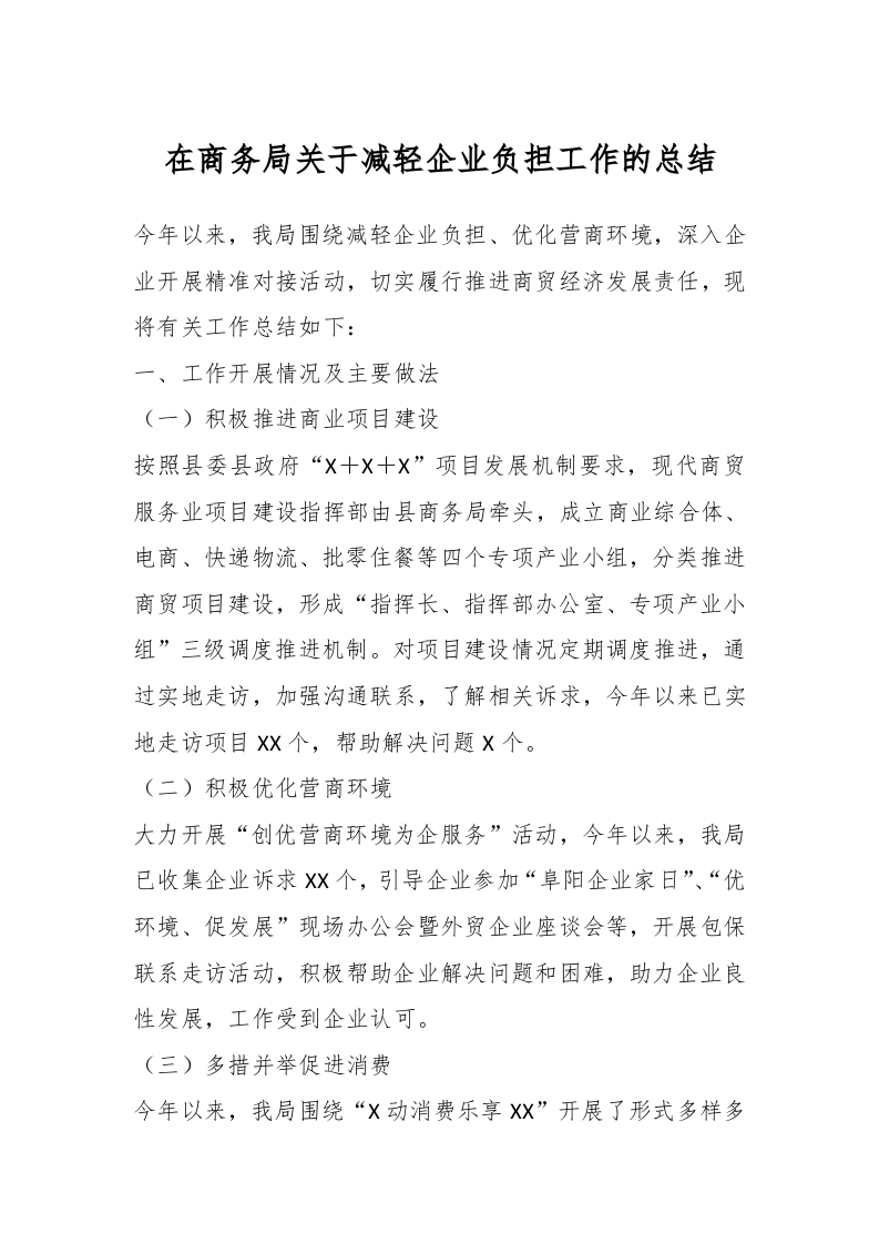 / 在商务局关于减轻企业负担工作的总结