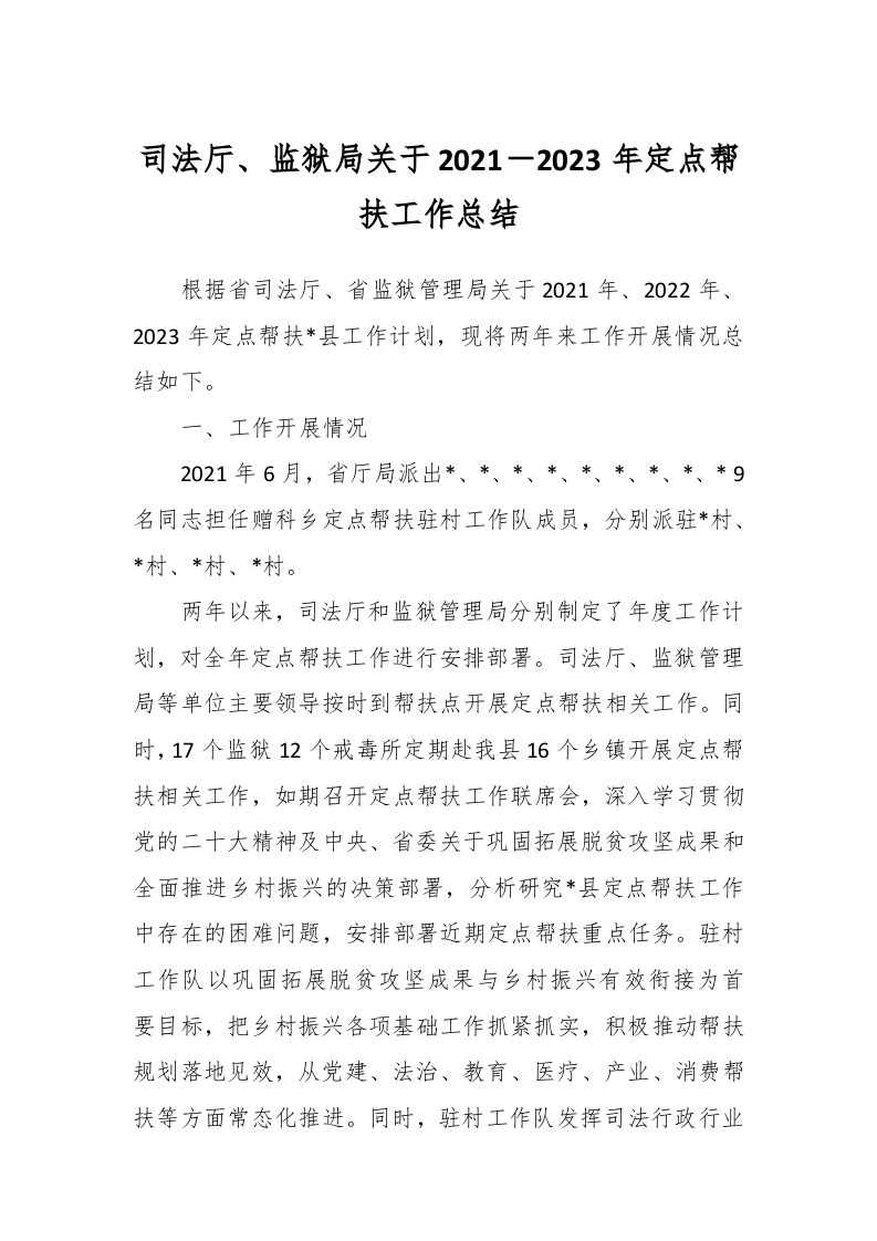 / 司法厅、监狱局关于2021-2023年定点帮扶工作总结