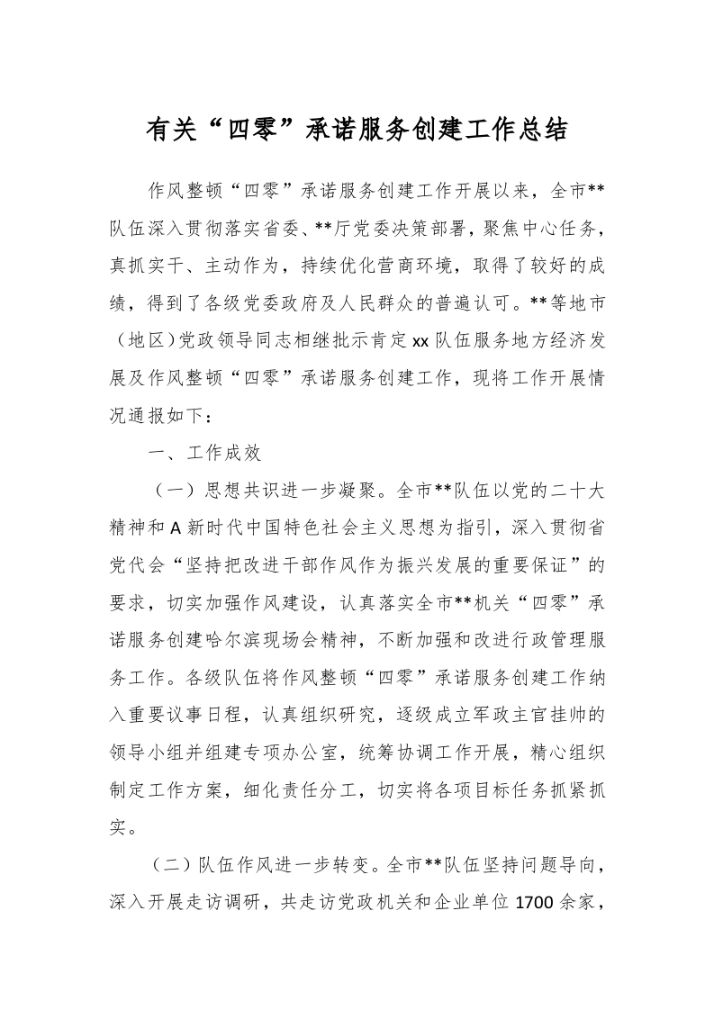 / 有关“四零”承诺服务创建工作总结