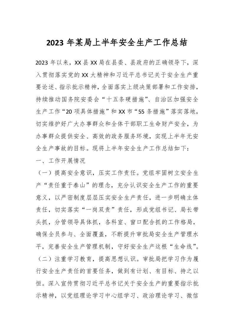 2023年某局上半年安全生产工作总结