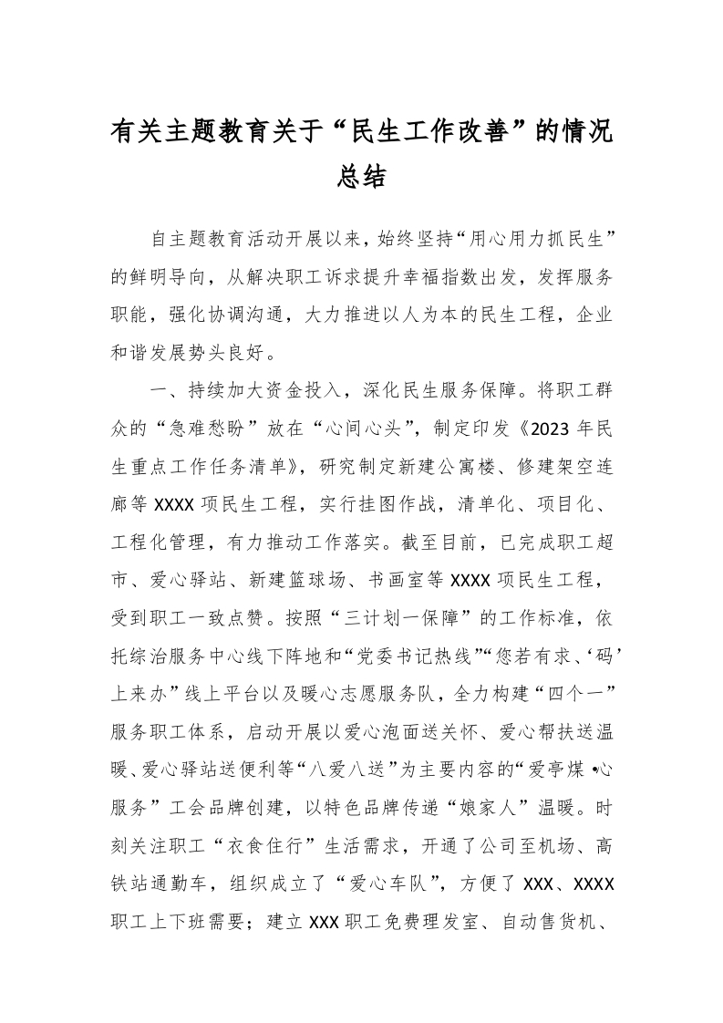 / 有关主题教育关于“民生工作改善”的情况总结