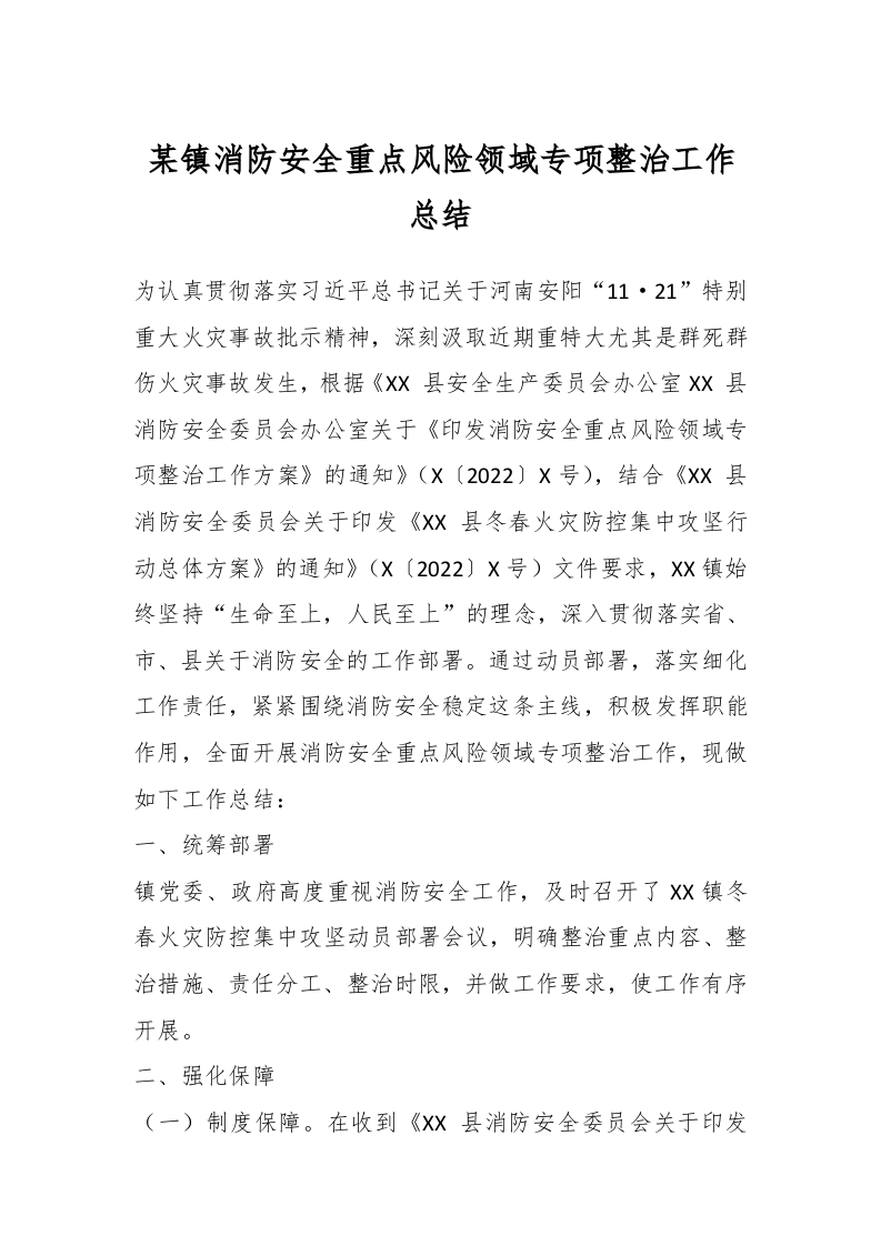 / 某镇消防安全重点风险领域专项整治工作总结