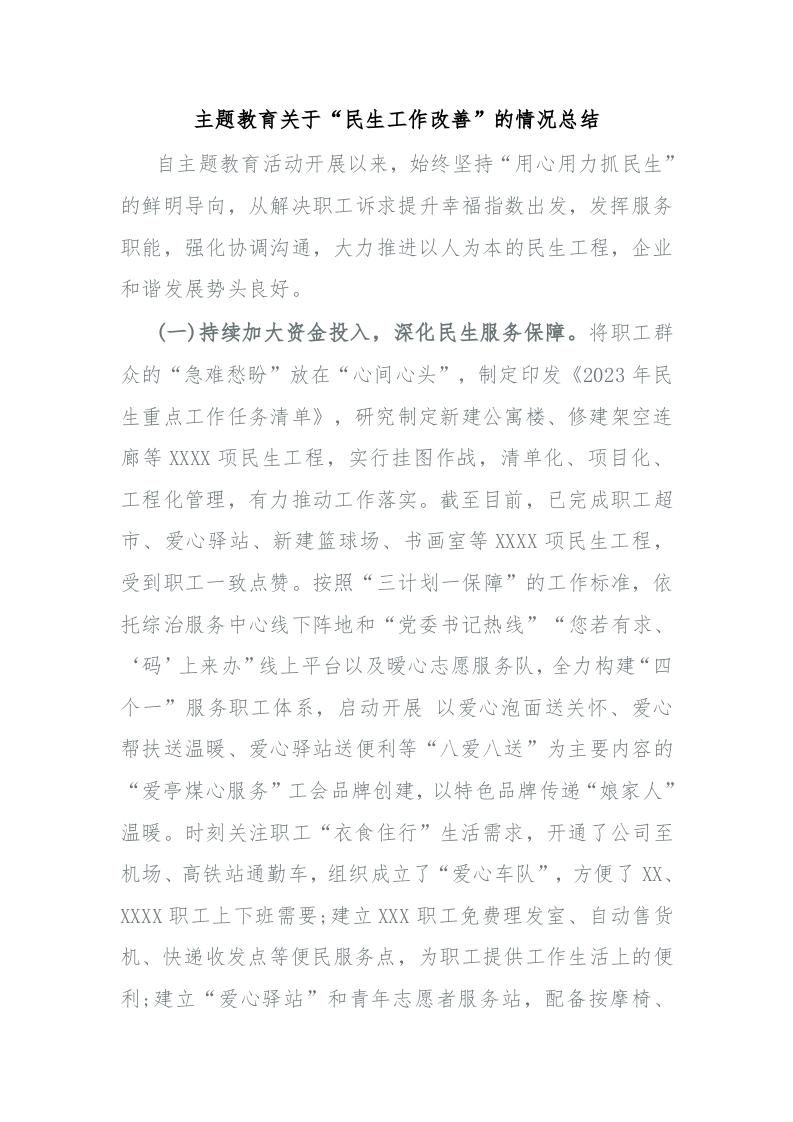/ 主题教育关于“民生工作改善”的情况总结