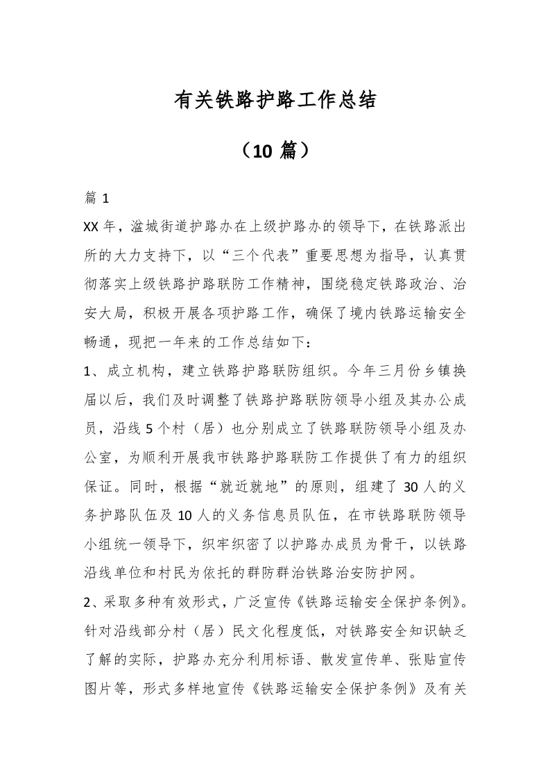 / (10篇)有关铁路护路工作总结