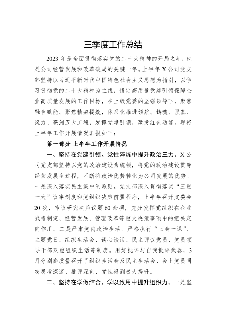 / 三季度工作总结