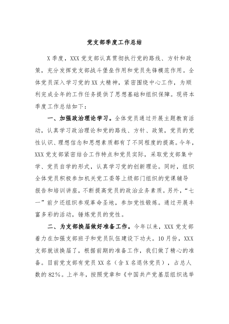 / 党支部季度工作总结