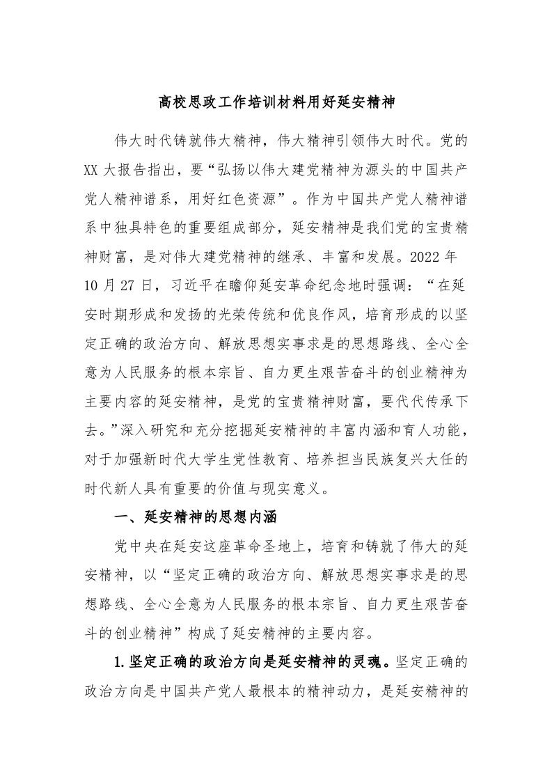 / 高校思政工作培训材料用好延安精神