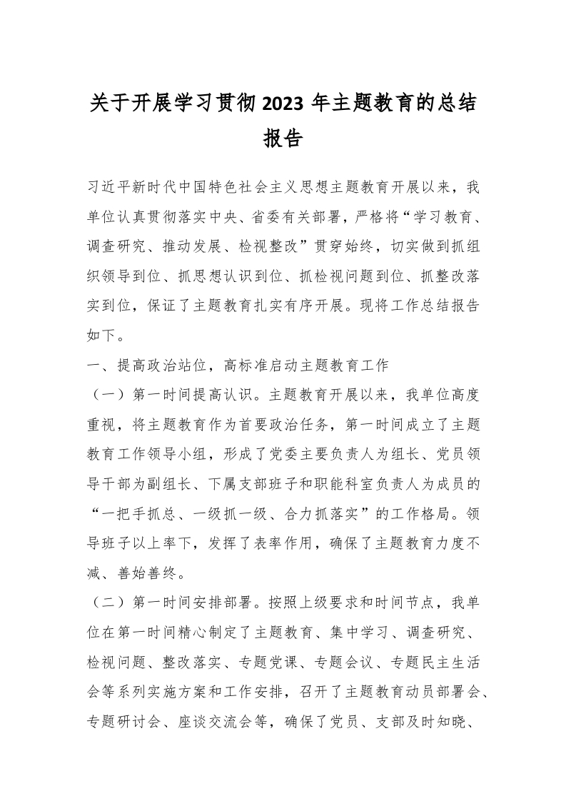 / 关于开展学习贯彻2023年主题教育的总结报告