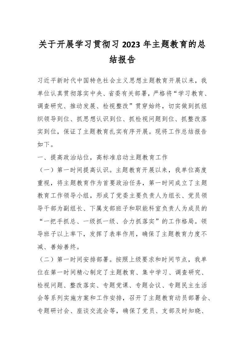 / 关于开展学习贯彻习2023年主题教育的总结报告