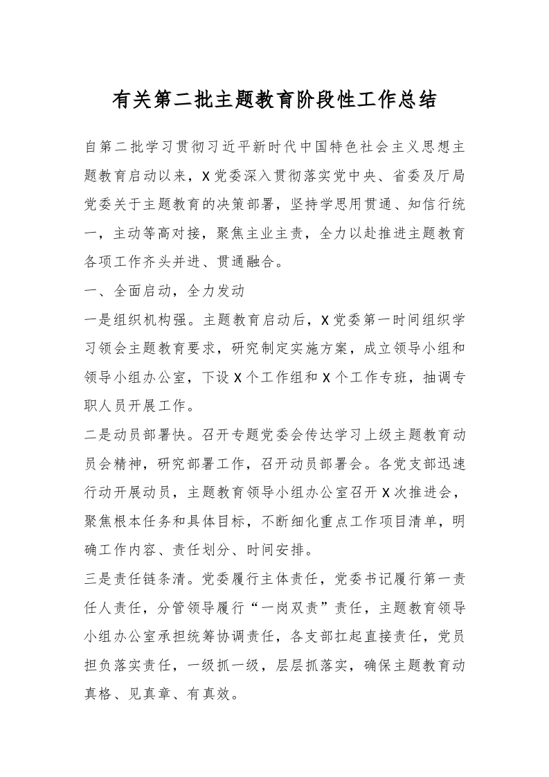 / 有关第二批主题教育阶段性工作总结