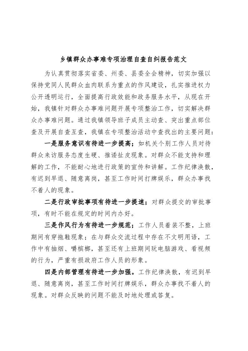 乡镇街道群众办事难专项治理自查自纠报告工作总结汇报