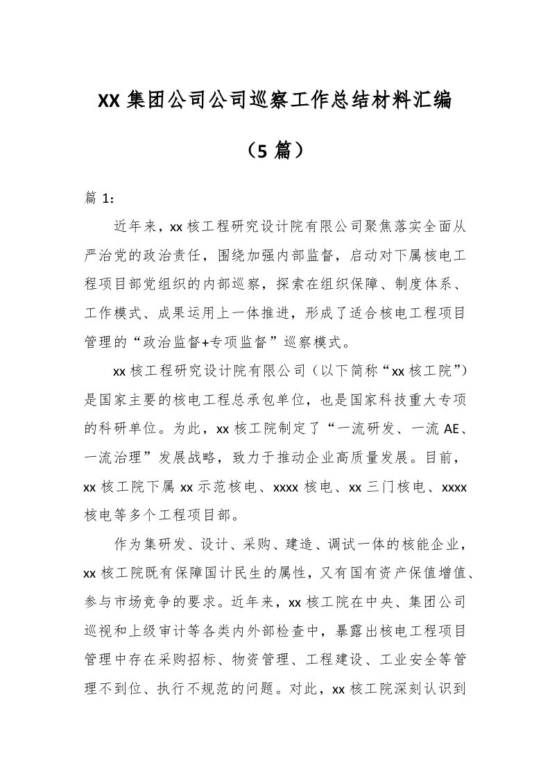 / (5篇)XX集团公司公司巡察工作总结材料汇编