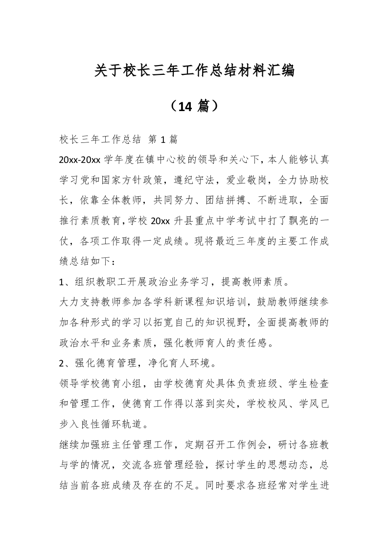/ (14篇)关于校长三年工作总结材料汇编