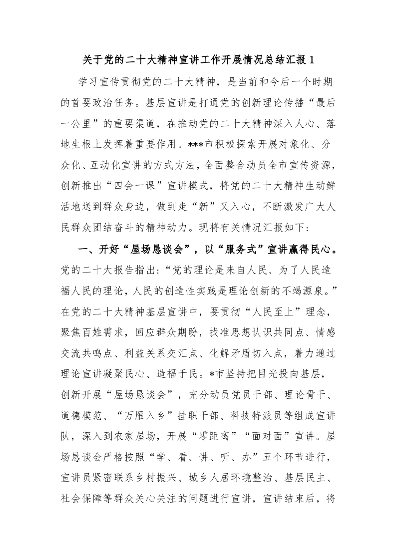 / 关于党的二十大精神宣讲工作开展情况总结汇报