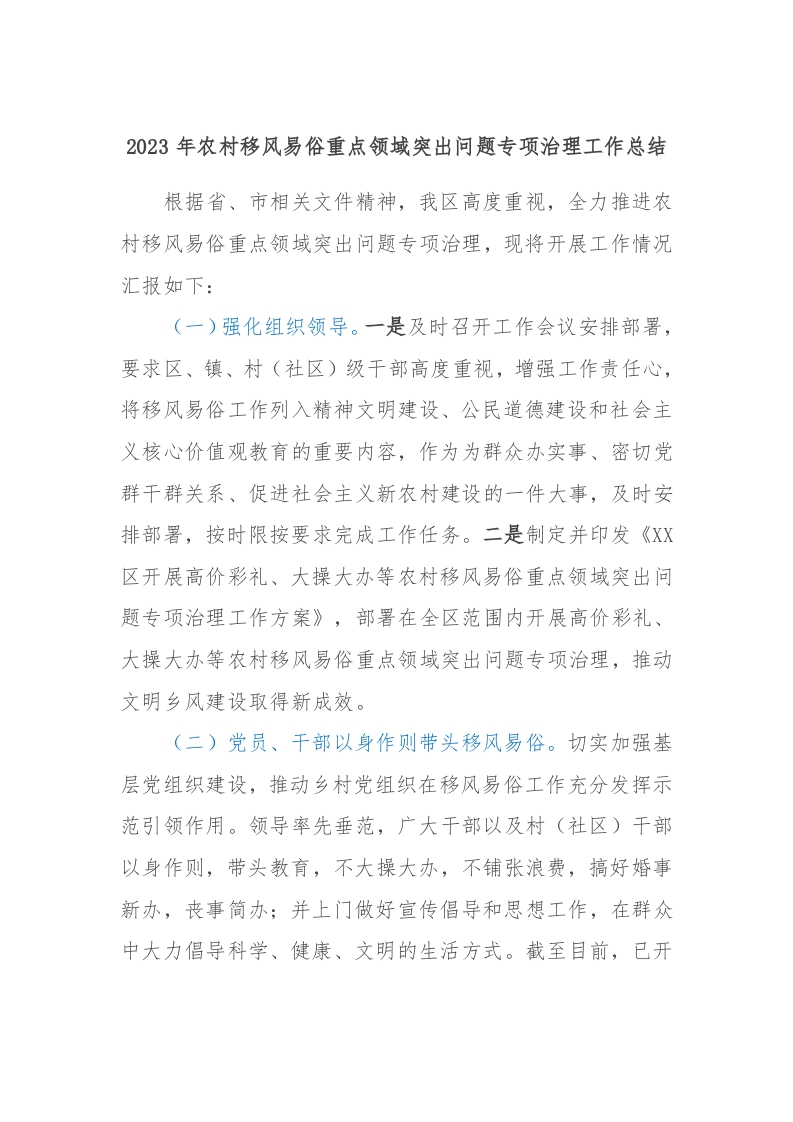 / 2023年农村移风易俗重点领域突出问题专项治理工作总结