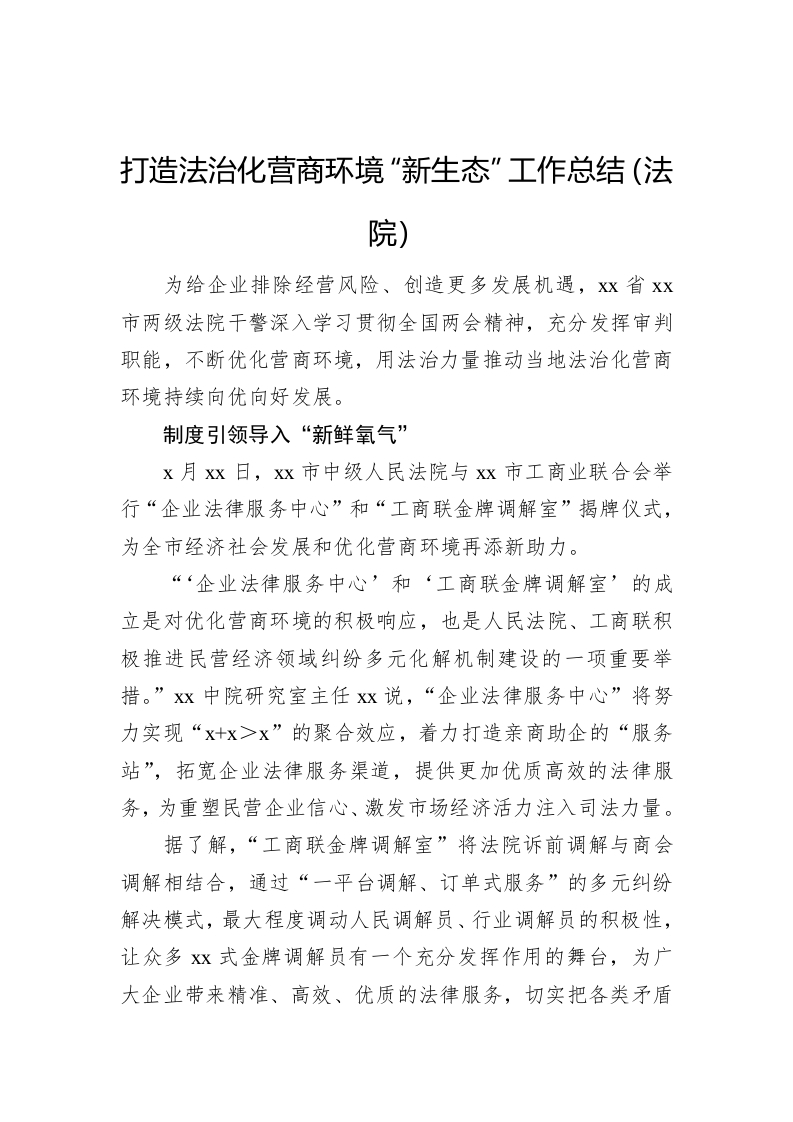 / 打造法治化营商环境“新生态”工作总结(法院)