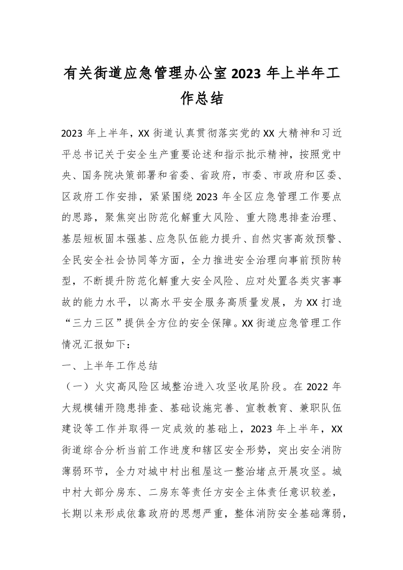 / 有关街道应急管理办公室2023年上半年工作总结