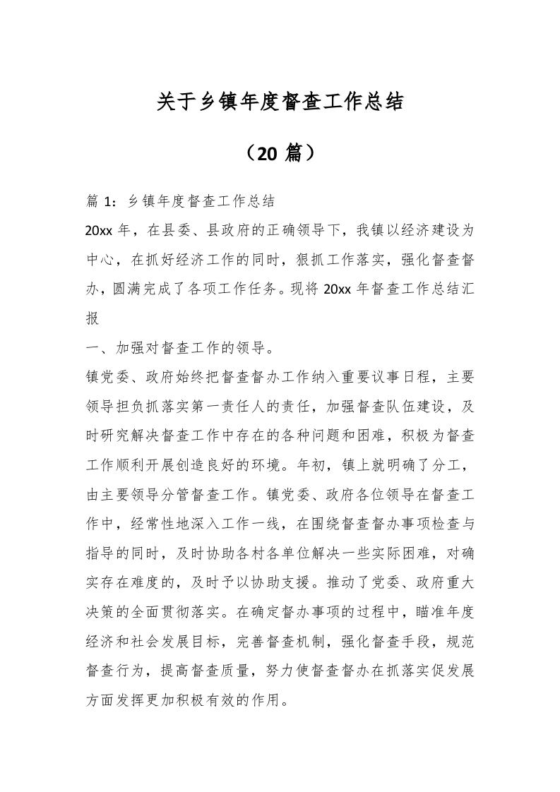 / (20篇)关于乡镇年度督查工作总结