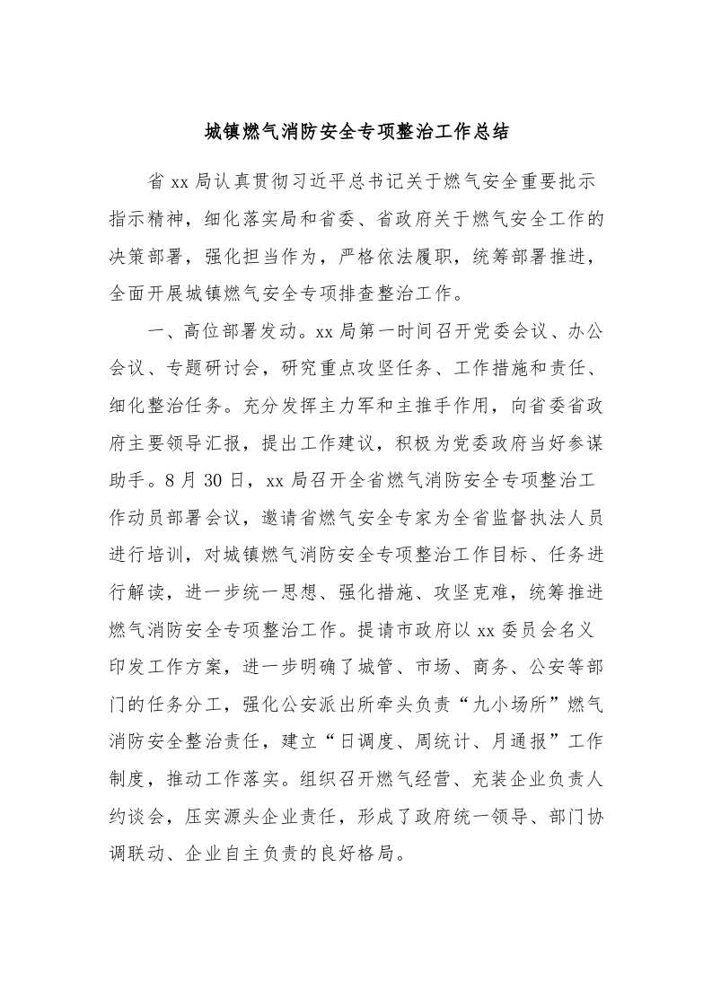 / 城镇燃气消防安全专项整治工作总结