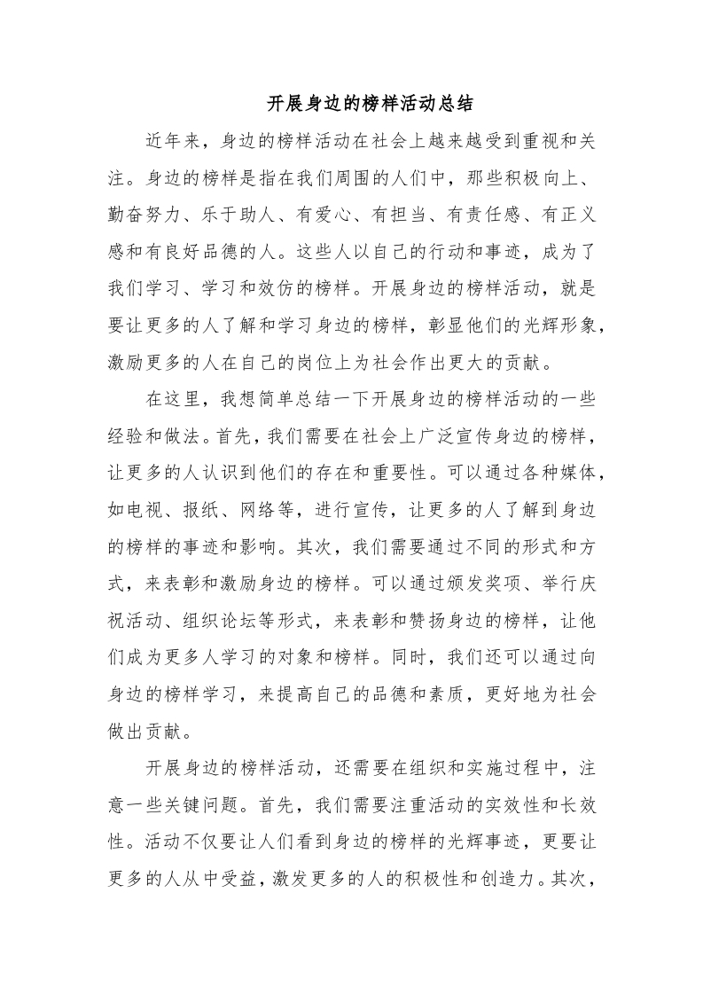 / 开展身边的榜样活动总结