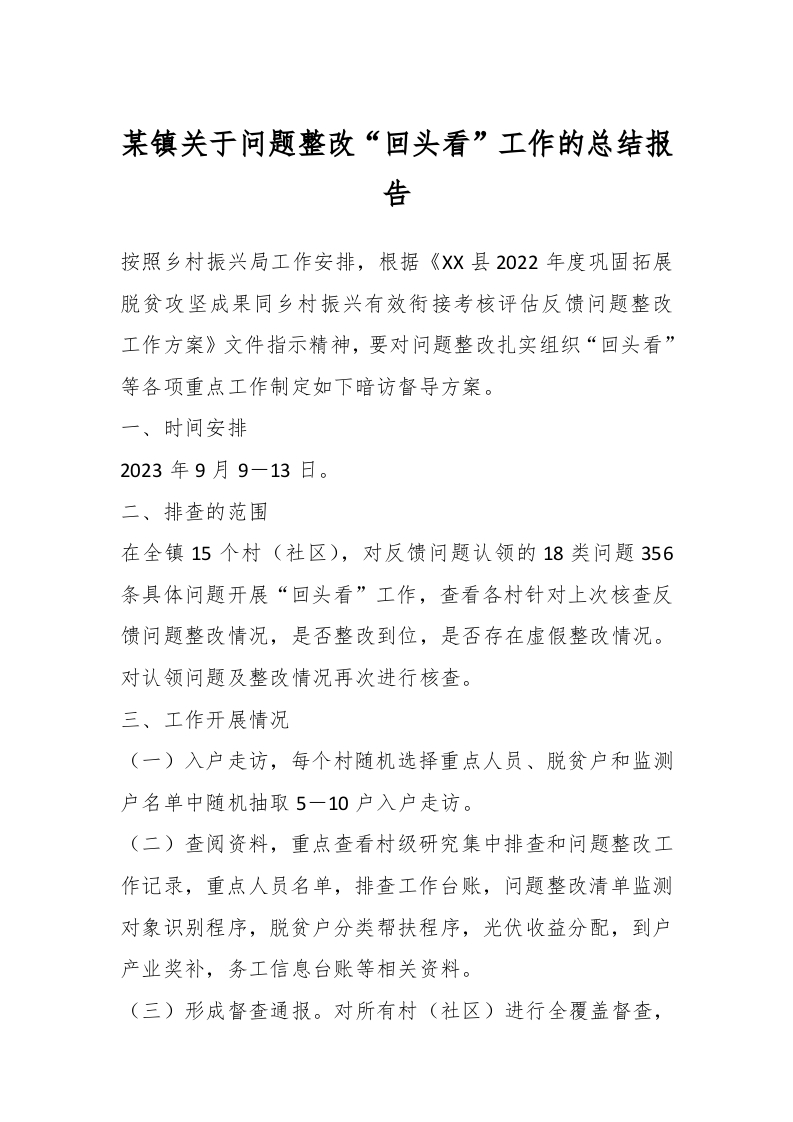 / 某镇关于问题整改“回头看”工作的总结报告
