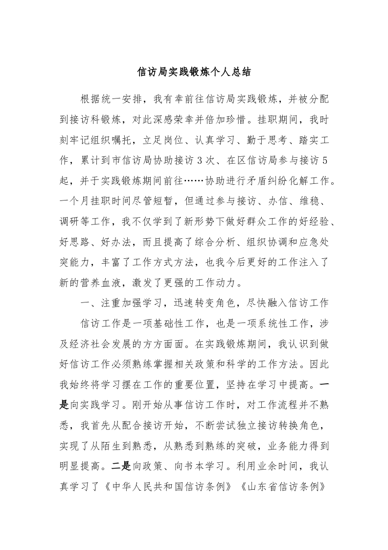 / 信访局实践锻炼个人总结