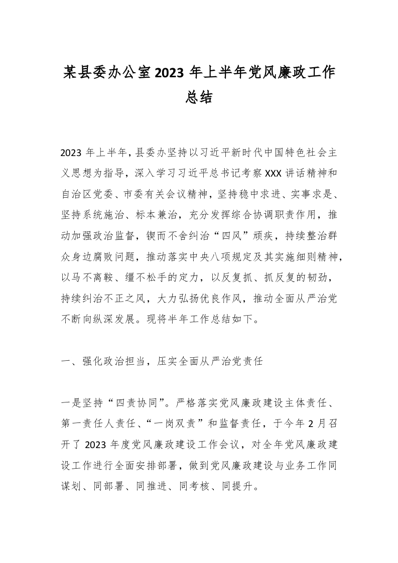 / 某县委办公室2023年上半年党风廉政工作总结