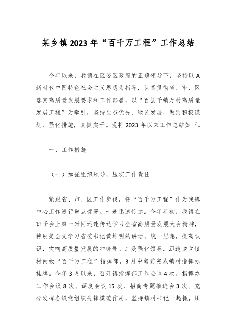 / 某乡镇2023年“百千万工程”工作总结