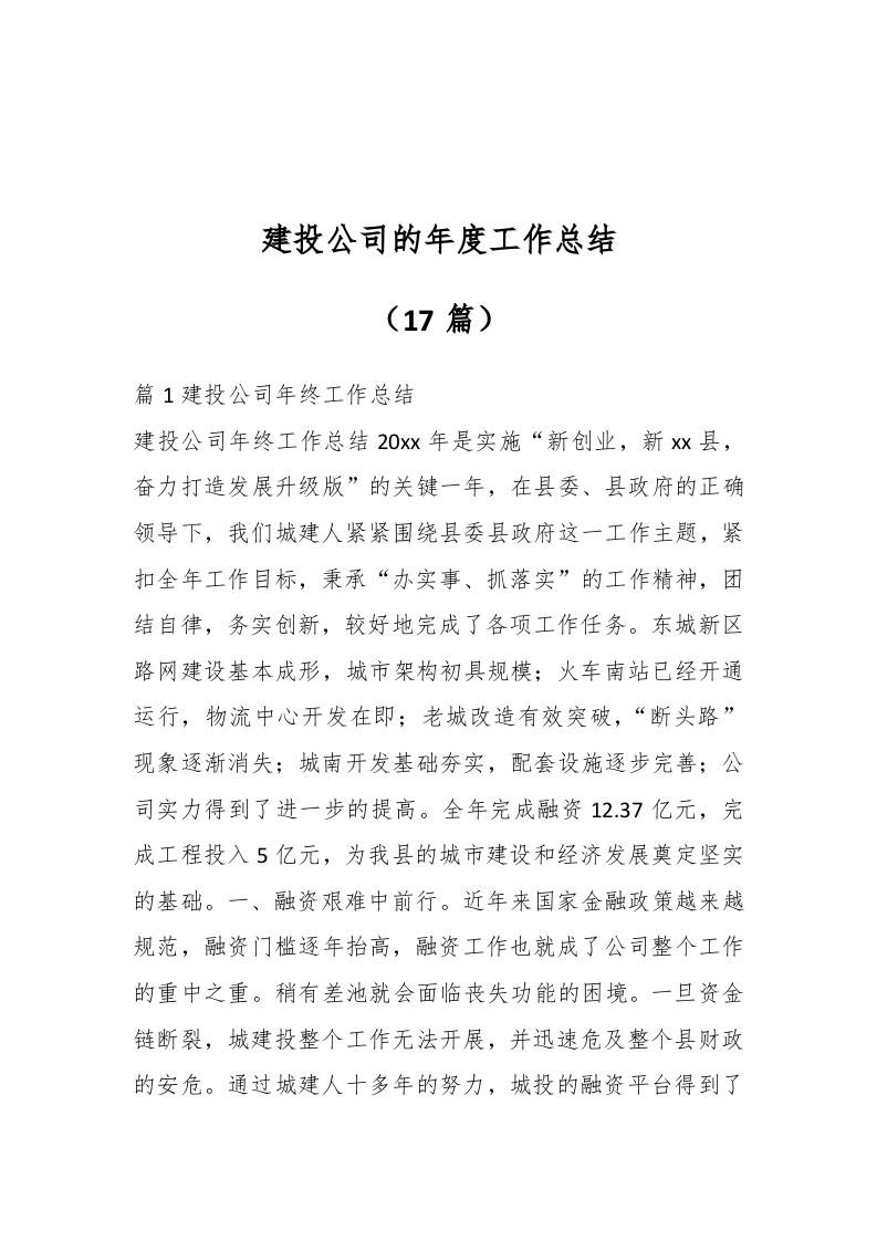 / (17篇)建投公司的年度工作总结