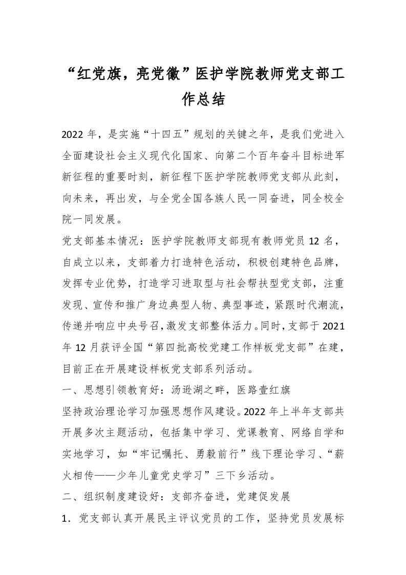 / “红党旗,亮党徽”医护学院教师党支部工作总结