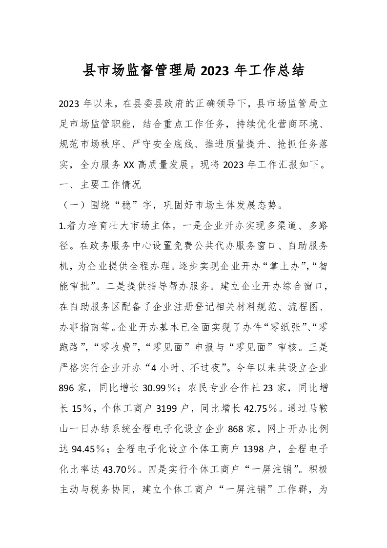 / 县市场监督管理局2023年工作总结
