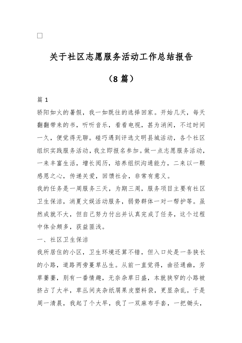 / (8篇)关于社区志愿服务活动工作总结报告
