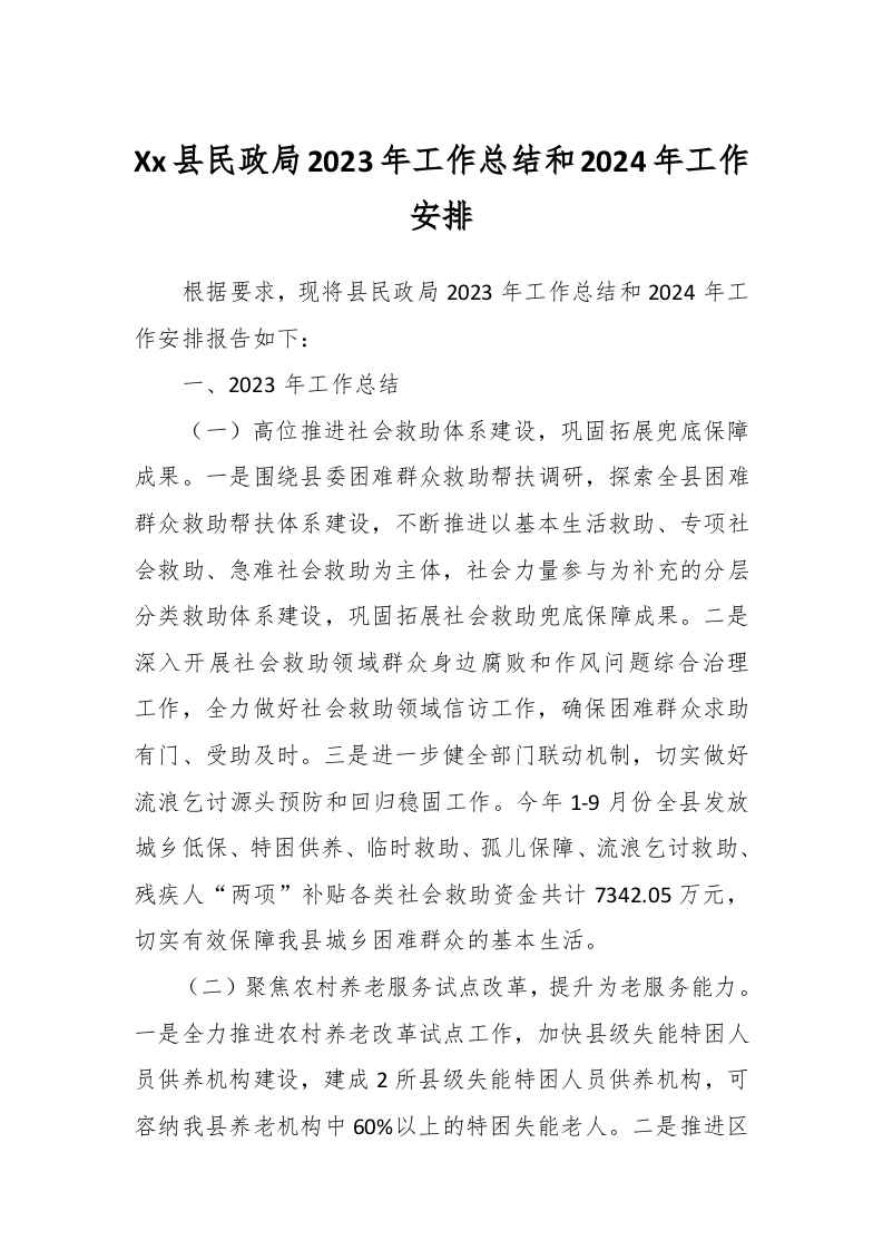 / Xx县民政局2023年工作总结和2024年工作安排