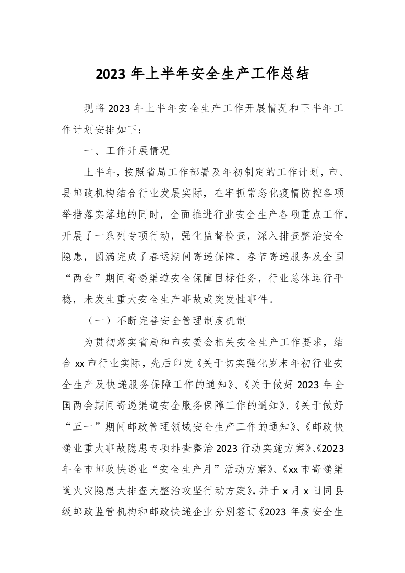 2023年上半年安全生产工作总结