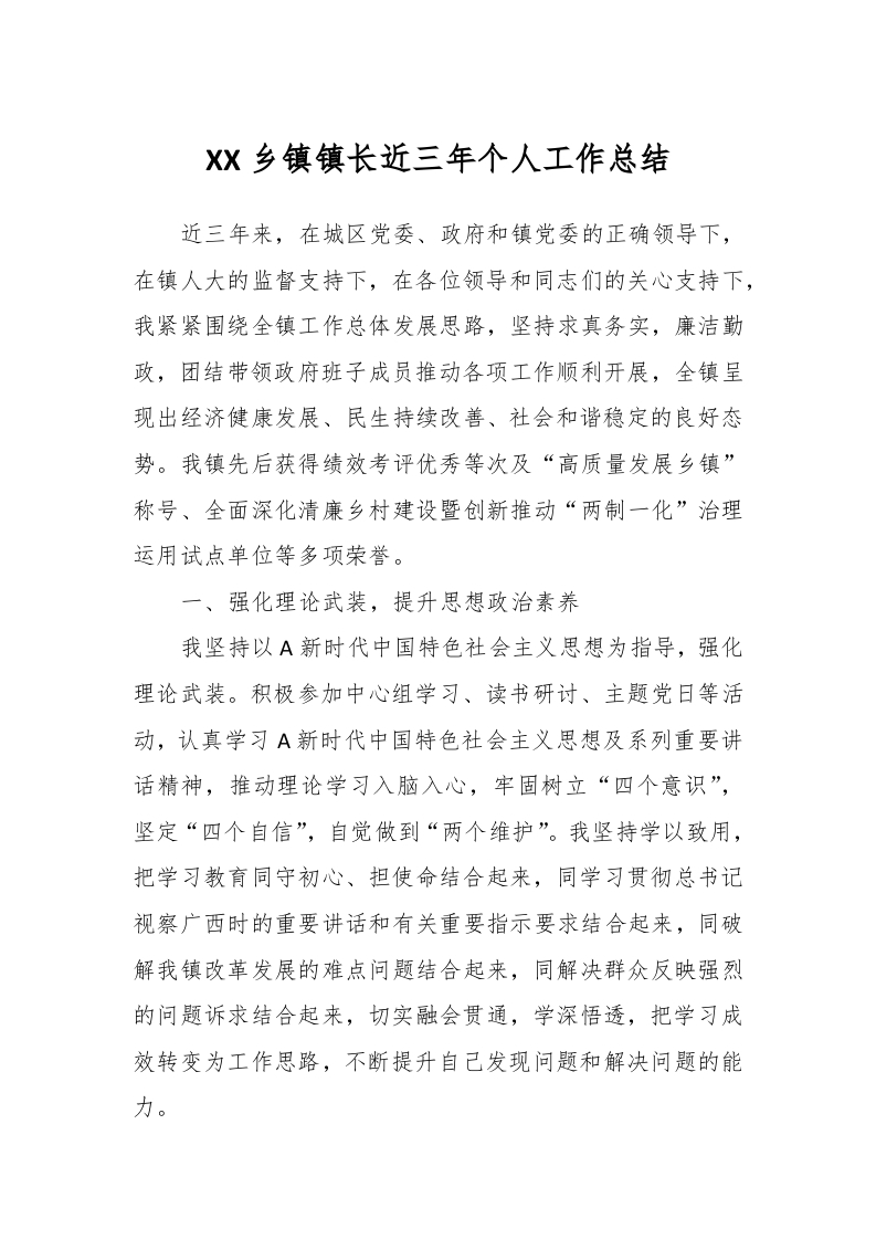 / XX乡镇镇长近三年个人工作总结