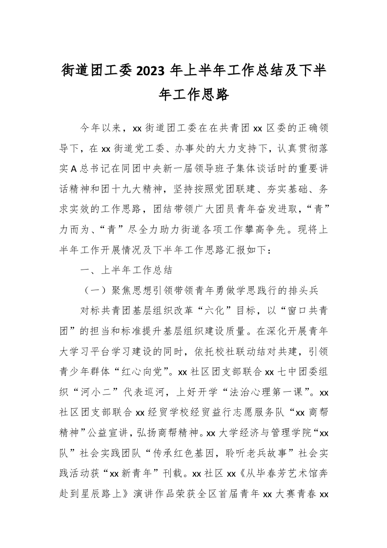/ 街道团工委2023年上半年工作总结及下半年工作思路