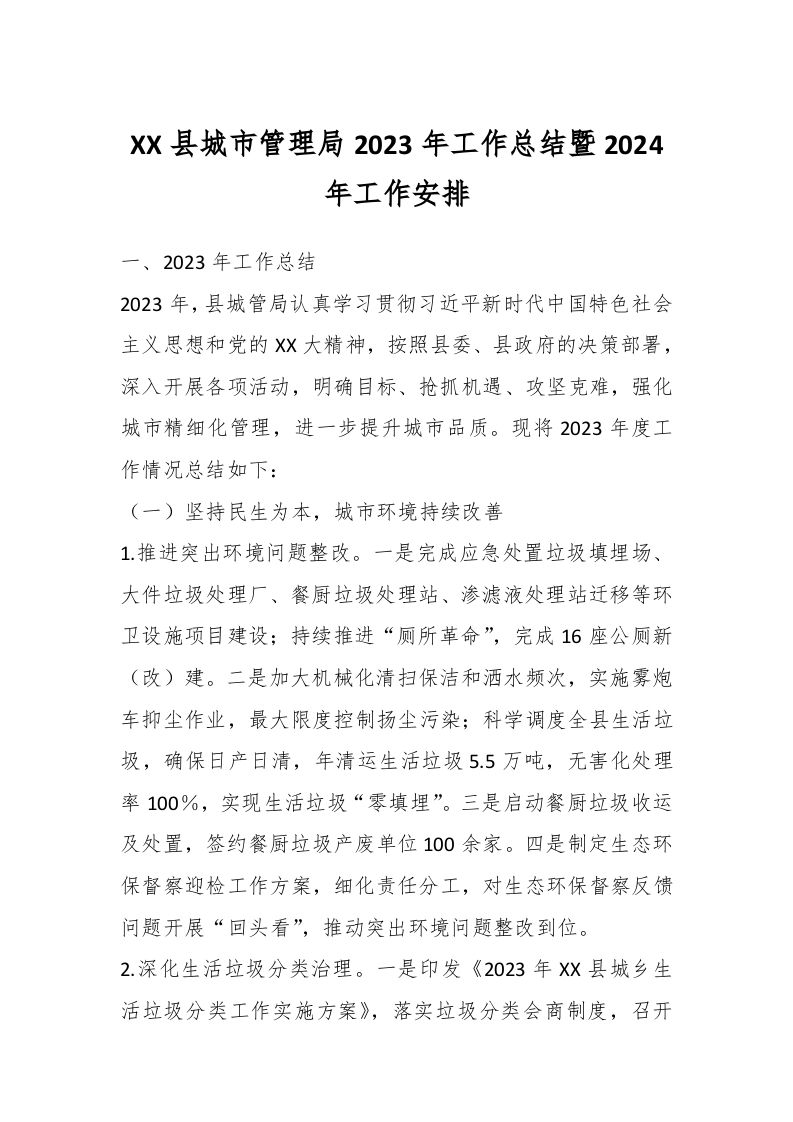/ XX县城市管理局2023年工作总结暨2024年工作安排