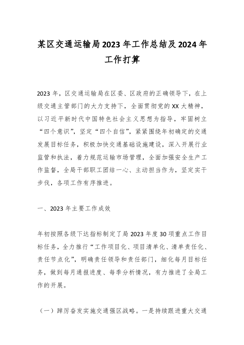 / 某区交通运输局2023年工作总结及2024年工作打算