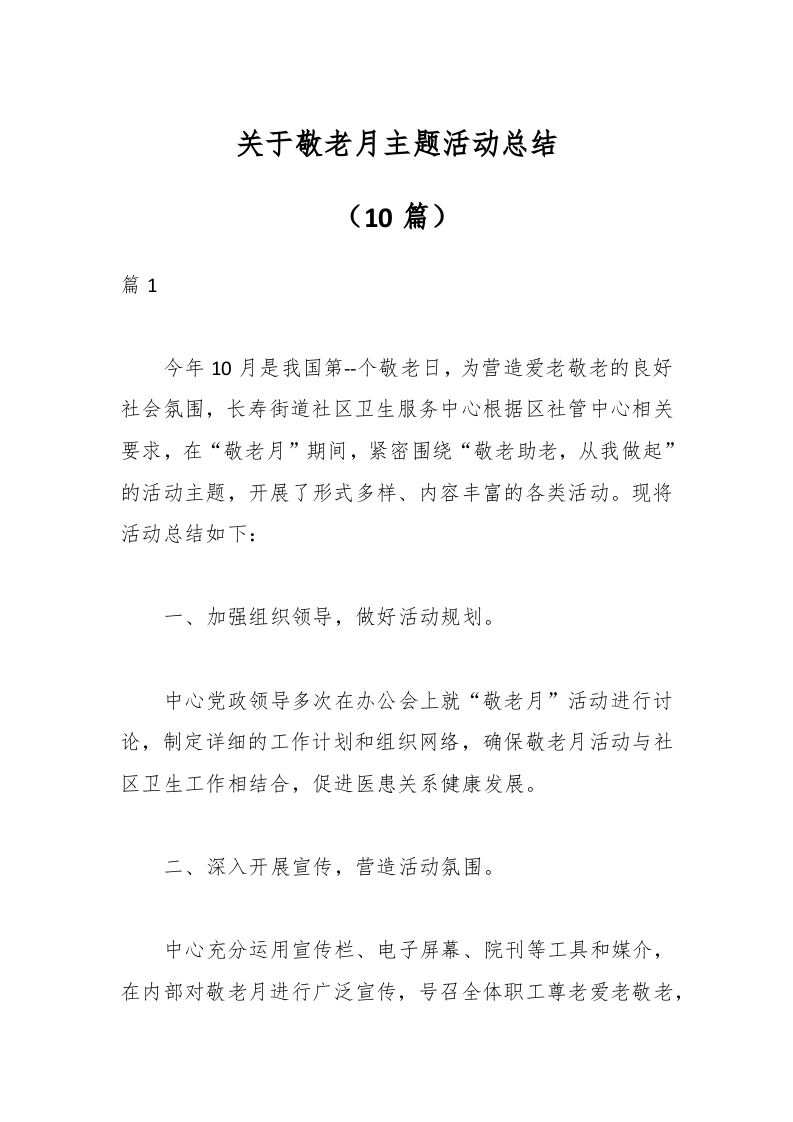 / (10篇)关于敬老月主题活动总结