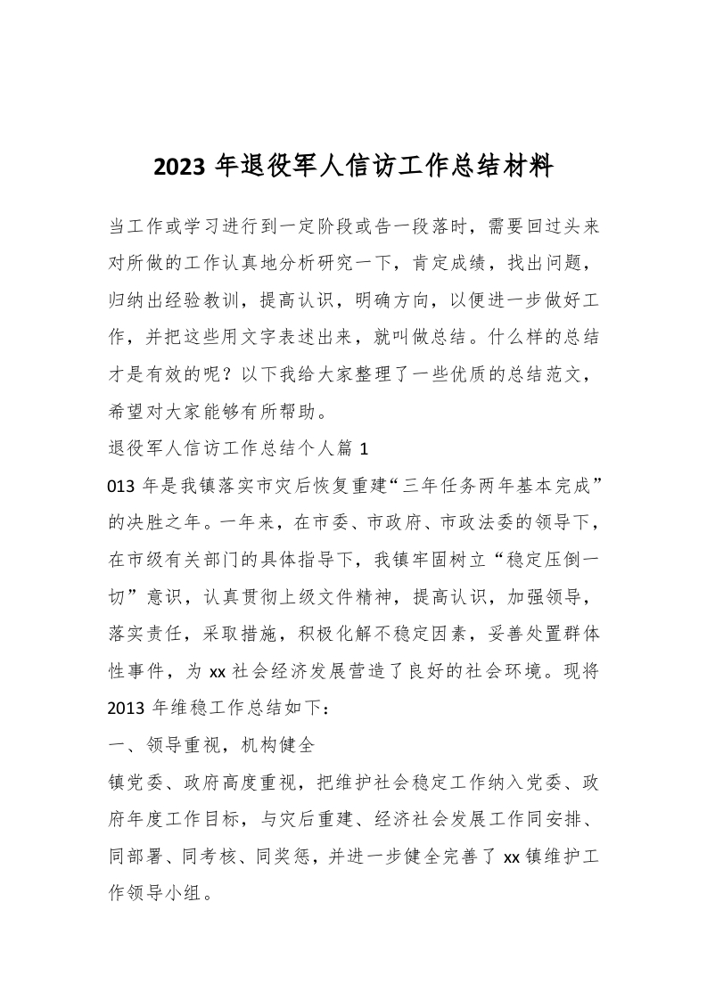 / 2023年退役军人信访工作总结材料