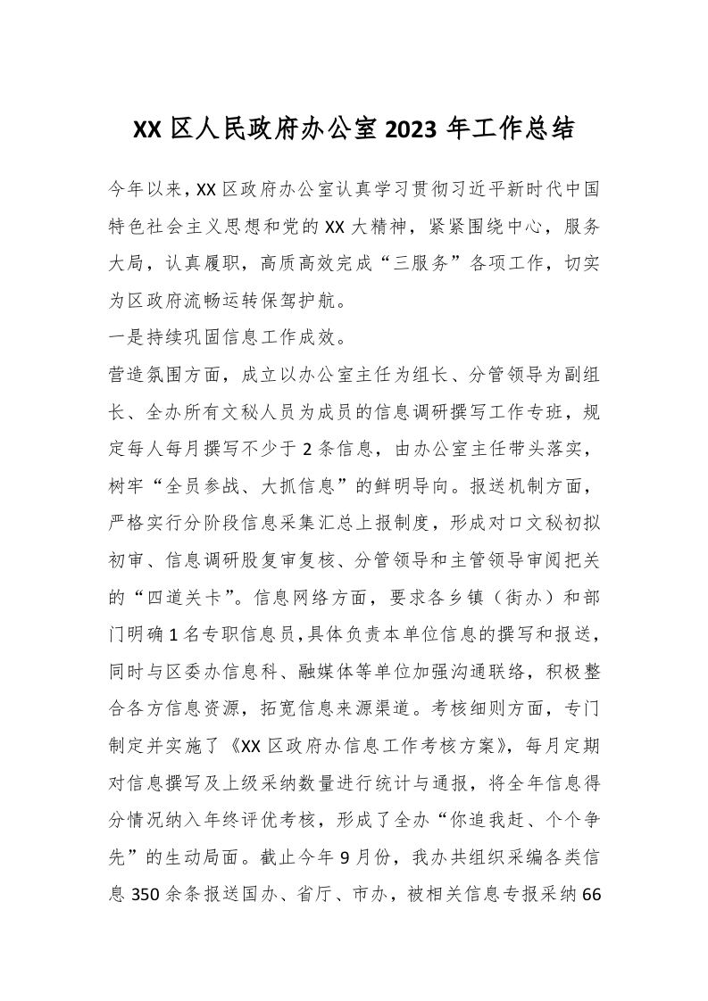 / XX区人民政府办公室2023年工作总结