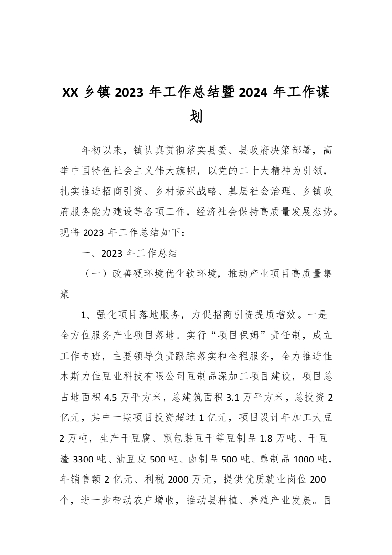 / XX乡镇2023年工作总结暨2024年工作谋划